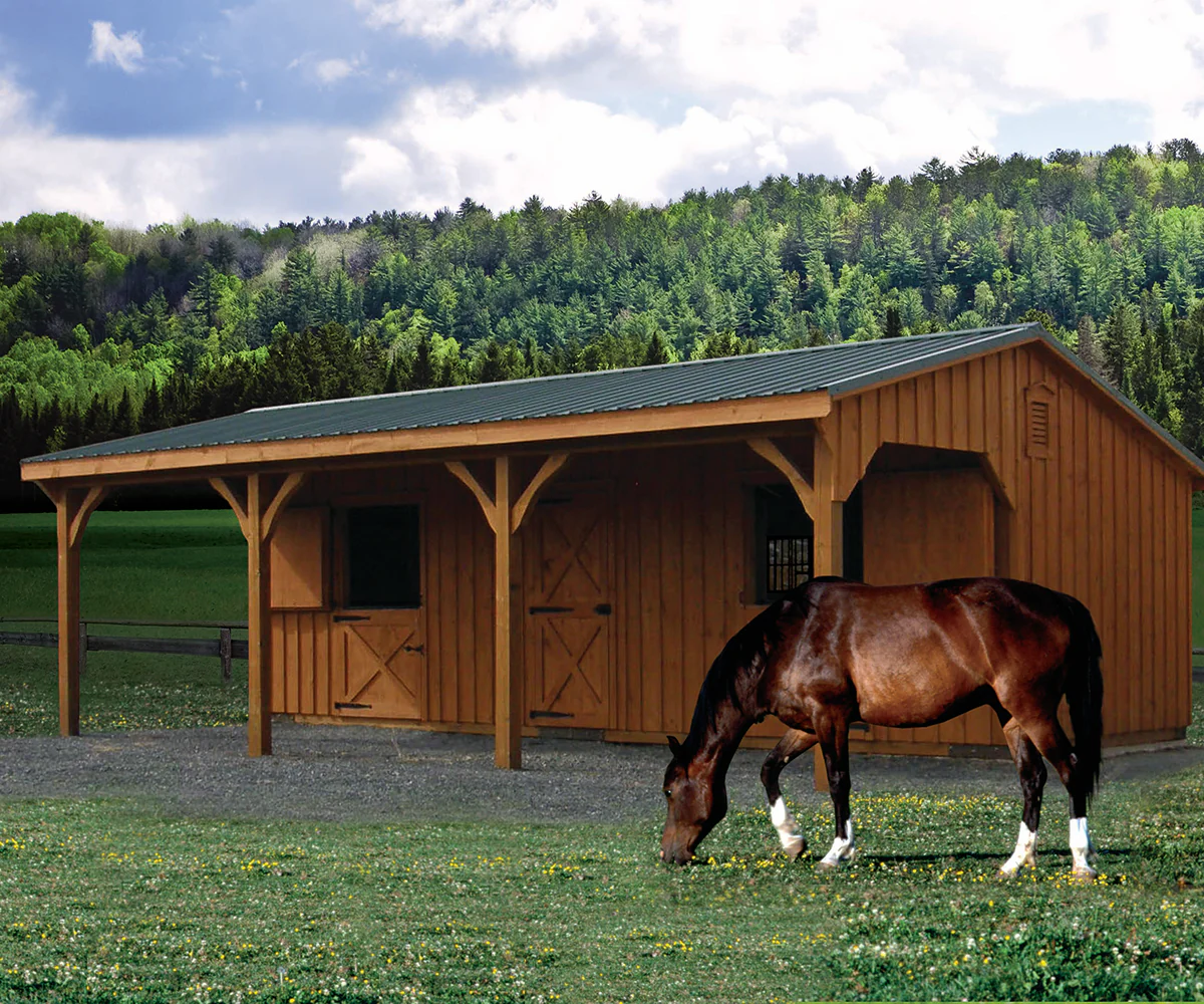 A good horse barn should make everyday care easier while giving your horses a safe, comfortable place to rest. Our horse barns are designed with practical layouts, dependable construction, and flexible options to fit your property, whether you need a simple run-in style shelter or a larger barn setup for multiple horses, tack, and storage. Explore the barn options below to find the right size and configuration for your routine, your space, and your goals.